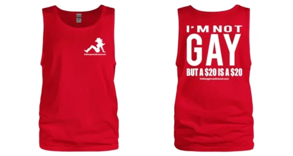 Stay cool and make a statement with our “I’m Not Gay But a $20 is a $20” men’s tank top. Perfect for casual wear or a night out.