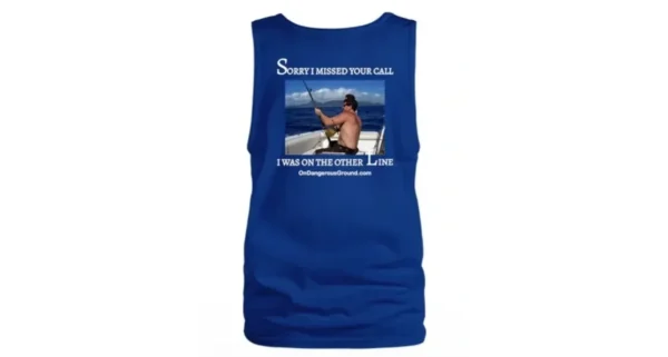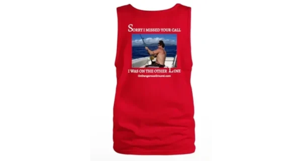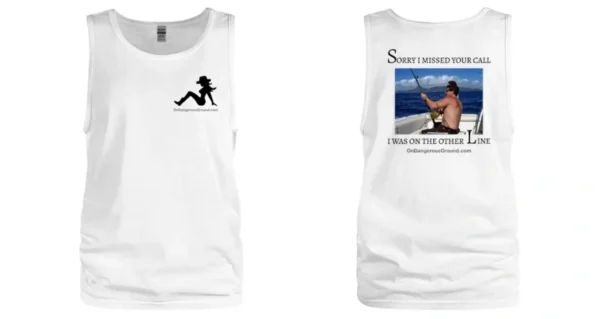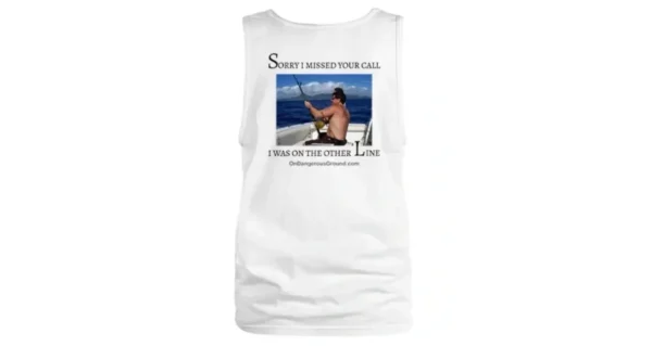 Stay cool and stylish in our “Sorry I Missed Your Call” men’s tank top. Perfect for any fishing enthusiast, this white tank features a fun design and comfortable fit.
